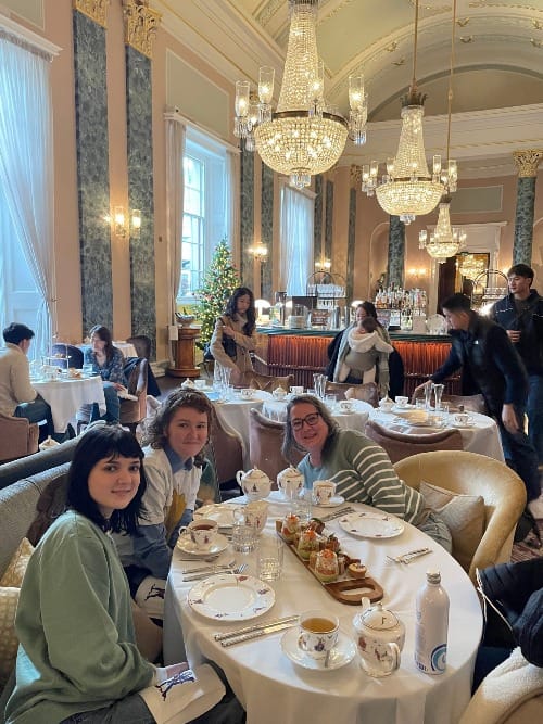 I haven’t written in a while because I had a birthday and hey, I went to London! That was fun. Here’s a picture of us having high tea at the Royal Theatre Drury Lane. Don’t we look posh?